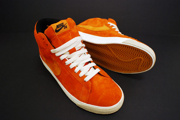 Finding inspiration from the board Lance Mountain used in the Bones Brigade Future Primitive video, the legendary duo created their first pair of Nike SB Blazers. The kicks feature suede uppers alongside a vibrant orange and white color scheme. Slated for an October 2008 release, we give you some updated imagery of the sneakers which will be accompanied by matching apparel featuring the artwork of Craig Stecyk.