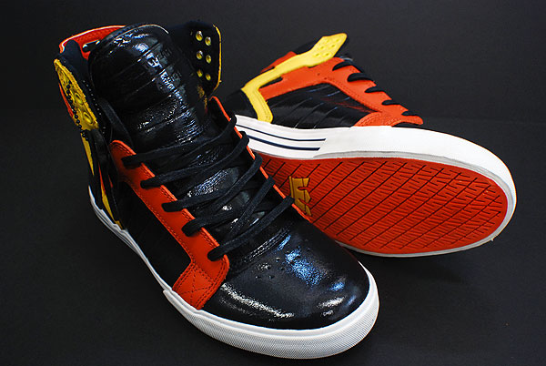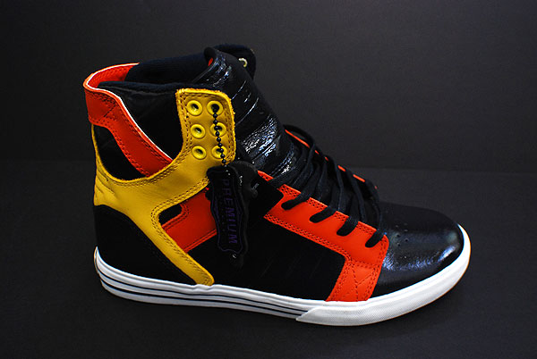 New Supra Skytop model at the Ward Warehouse In4mation! This time is a patent leather with Black, Orange, and Yellow colors….See details below….
