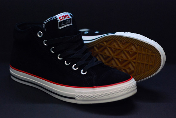 Some new Cons in the building at Ward. We recently got that Chuck Taylor mid with the waxed canvas in blue.. Now we have one thats all suede in black with some streamline red hints on it. Also another ERX in… Memory foam to make it complete and straight on comfy with the Cons skate shoes. See details below…