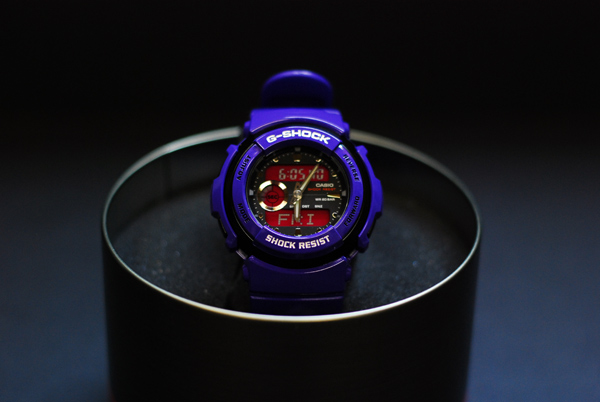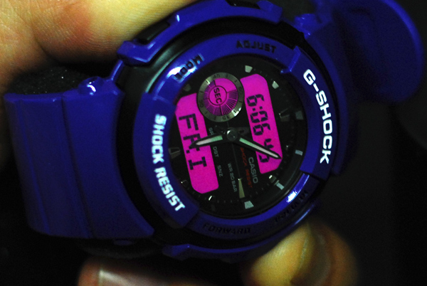 G-Shock coming out with a lot of different face plate styles. This one is an enriched purple with analog and digital settings for old and new school people… with an injection of pink when lit up. See the Purple Avenger and the details below…