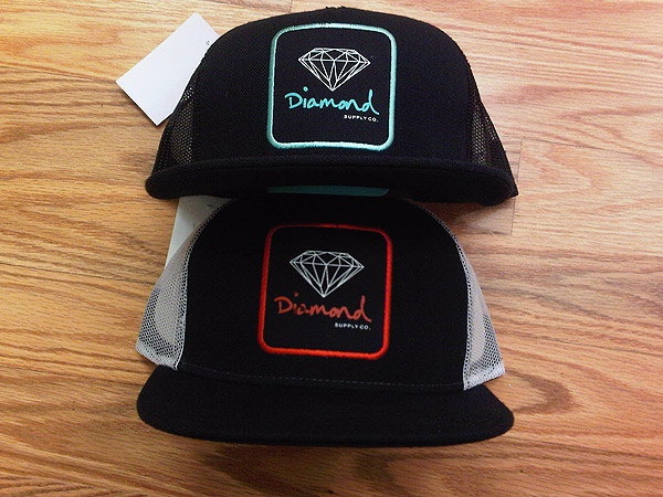 Diamond Supply Co Truckers at the Pearlridge In4mation shop. Available in two colors ways, one in a red/black/white and the other in the signature tiffany/black/white color. Also a custom snap back with diamond shape snaps. See details below…