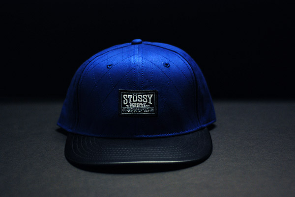 Quilted Baseball Cap by Stussy in at the Ward Warehouse In4amation. Available in 3 different colors, Blue, Black, and Grey. All with a black leather bill. See details below…